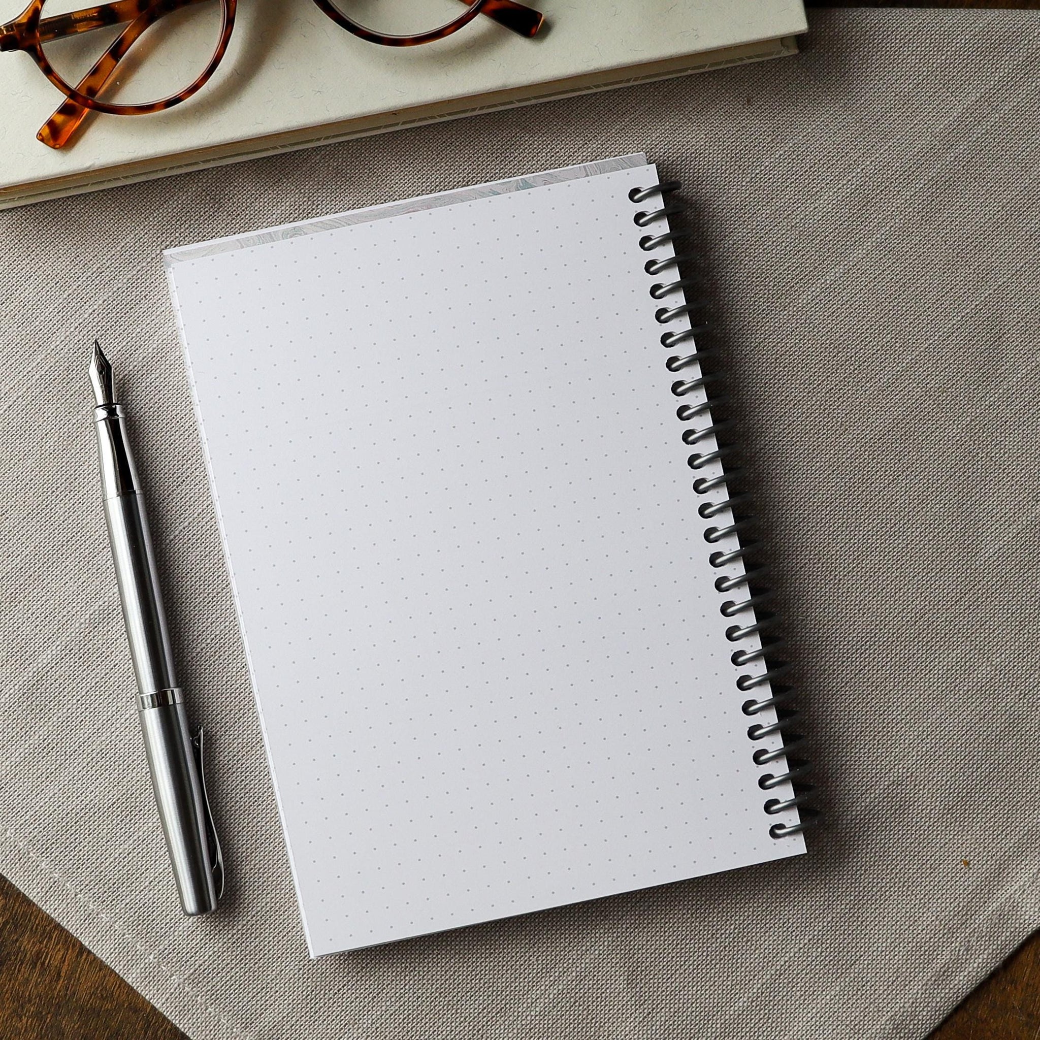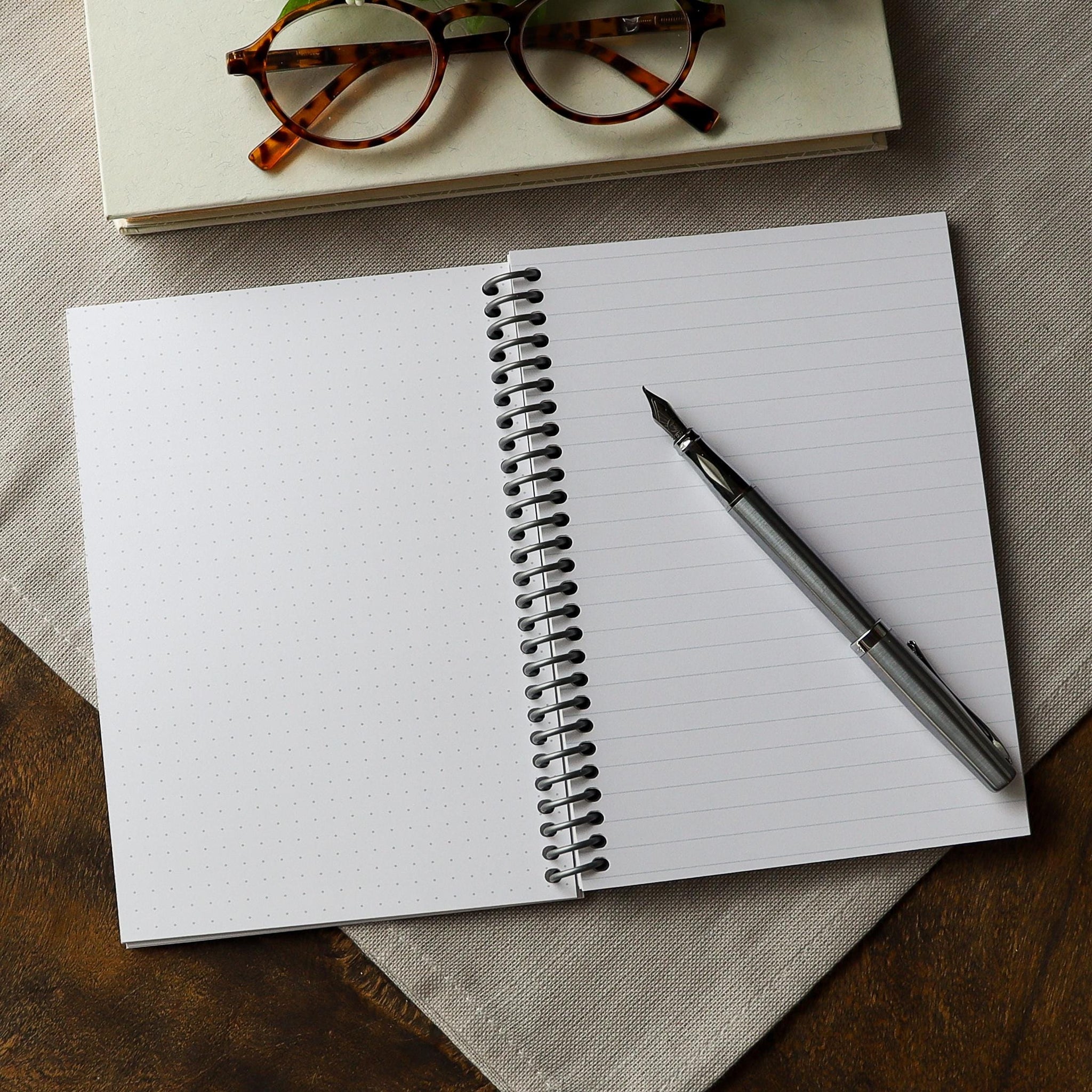 • 40 sheets, printed front and back on quality super smooth 80 lb. cover weight paper (no bleed through with normal use). The front side of each sheet is standard lined paper, and the back of each sheet features a dot-grid bullet journal-style pattern.